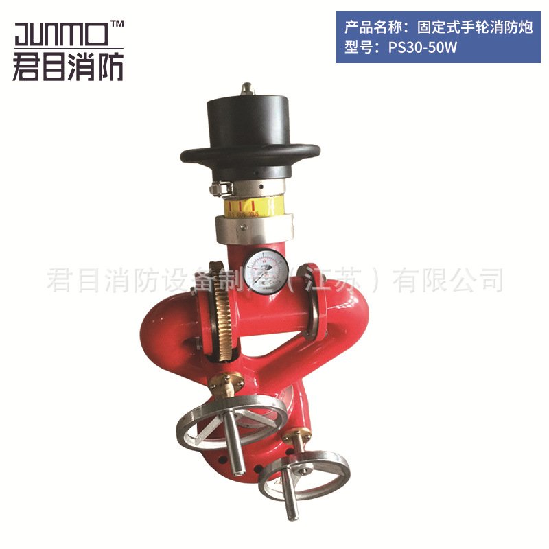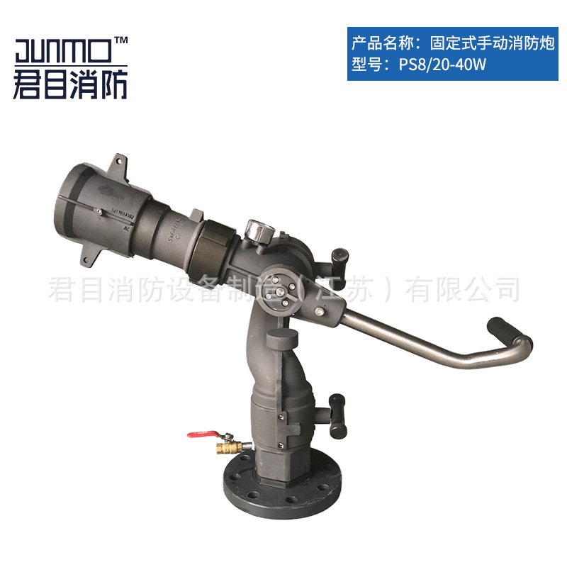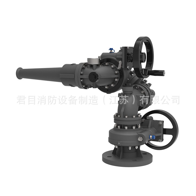 固定式消防水炮是由底座、壳体、喷头、炮筒、水平回转等机构组成,消防水炮炮身可作水平回转、俯仰转动,并能实现可靠定位锁紧,以利消防人员撤离火场,保护消防人员的人身安全。消防水炮具有直流/开花两种喷射功能,当喷射水柱时,可扑灭远距离固体火灾;当喷射开花水雾时,可用于火场降温冷却、消防抢险。因该炮功能 结构新颖、操作方便,消防水炮适用于配备重型消防车、消防舰艇,也可作为工矿企业、仓库、油田、贮罐的固定灭火设备。