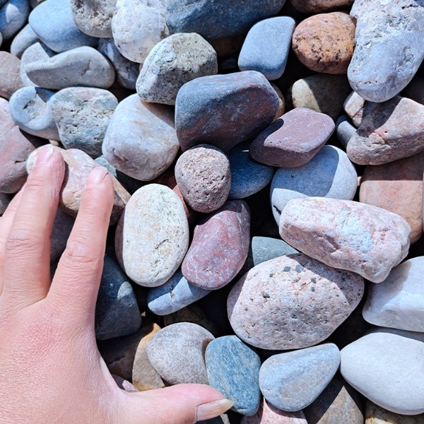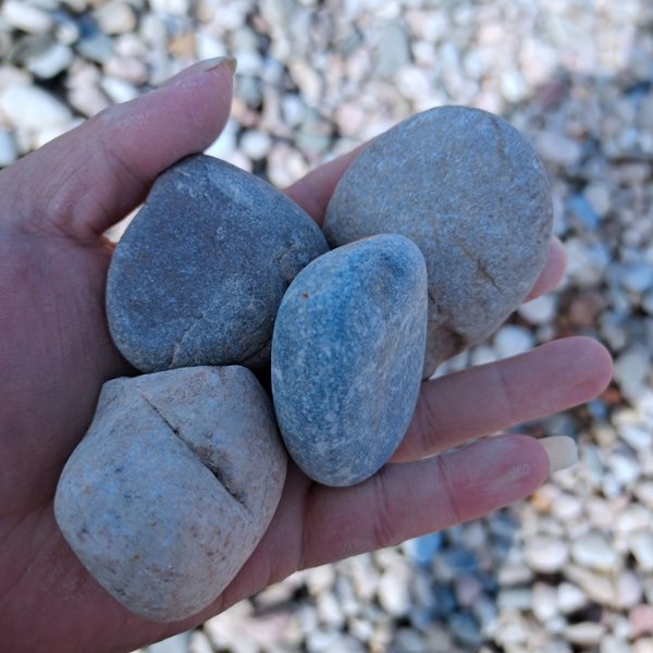 由于地壳运动等自然力的震动风化,再经过山洪冲击,流水搬运和砂石间反复翻滚摩擦,终于形成可爱的圆浑状小卵石。
