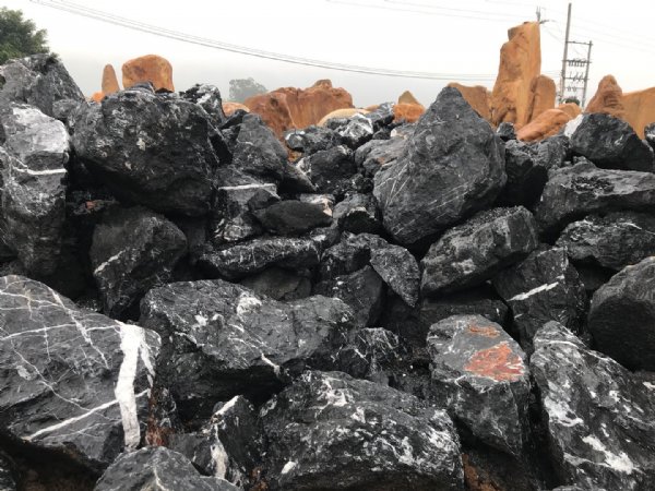 - 大型黑山石假山造景 原石加工切片