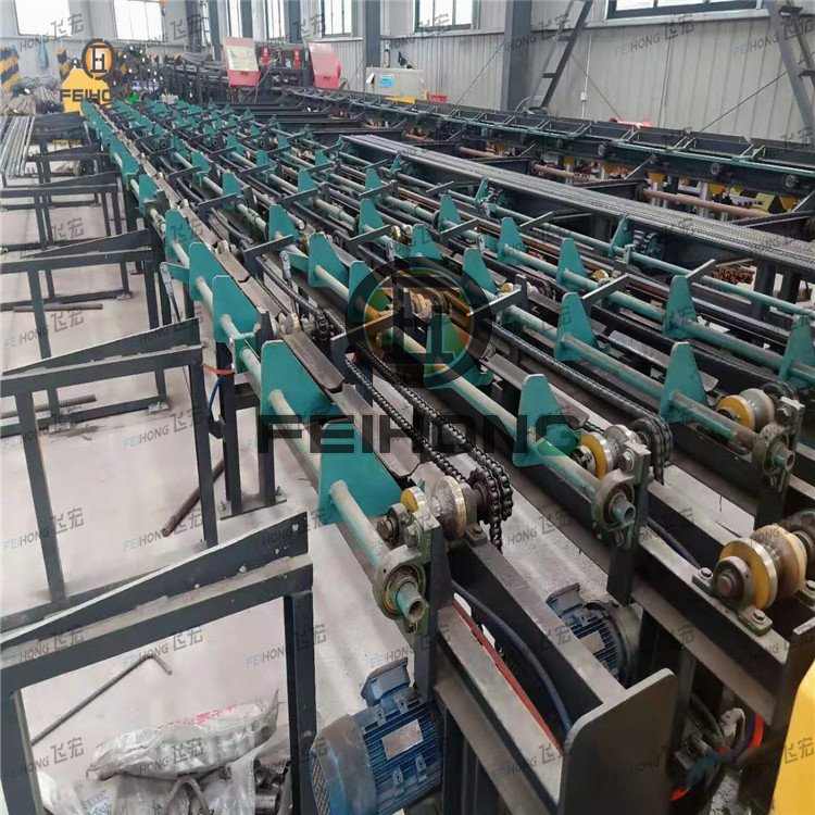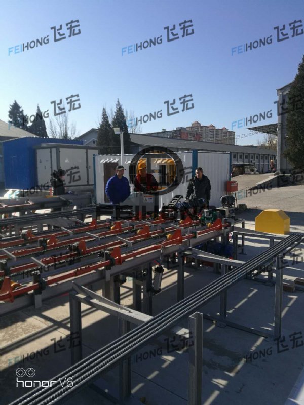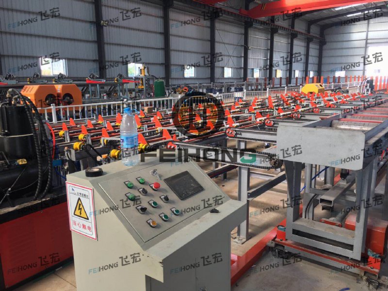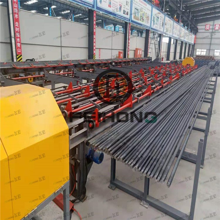 FHST-40SAC型数控钢筋锯切套丝打磨生产线主要由备料架、锯前输送轨道、锯切主机、锯后输送卸料轨道、送料平台、一号套丝辊道、一号套丝机二号套丝机、二号套丝辊道、一号打磨机、一号打磨辊道、二号打磨辊道、二号打磨机、储料平台、电控柜、操作柜十四部分组成。设备采用数字化控制,响应速度快,具有结构简单、易操作、效率高、功能强、维护方便的特点;