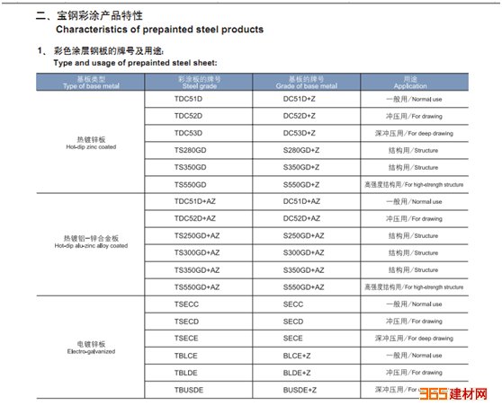 宝钢彩涂板牌号材质对照表: