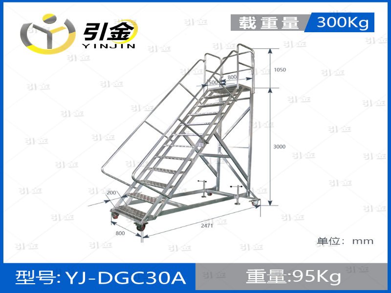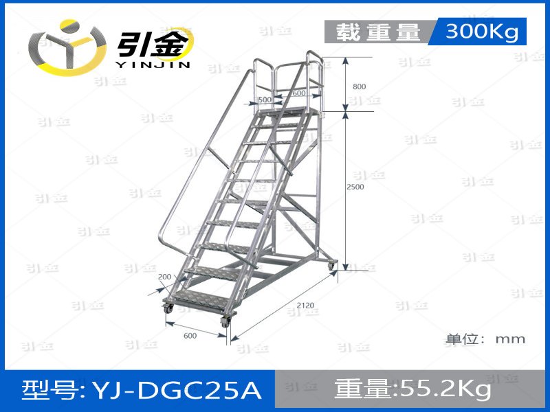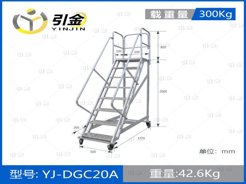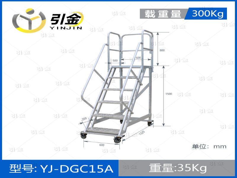 1、围栏平台梯,四周均有保护围栏,自带安全防护网,工作人员可得到全面保护,平台高度从0.48米-1.6米,整体高度从1.45-2.55米,有移动脚轮和铝制扶手,踢脚板,操作方便,可快速移动。