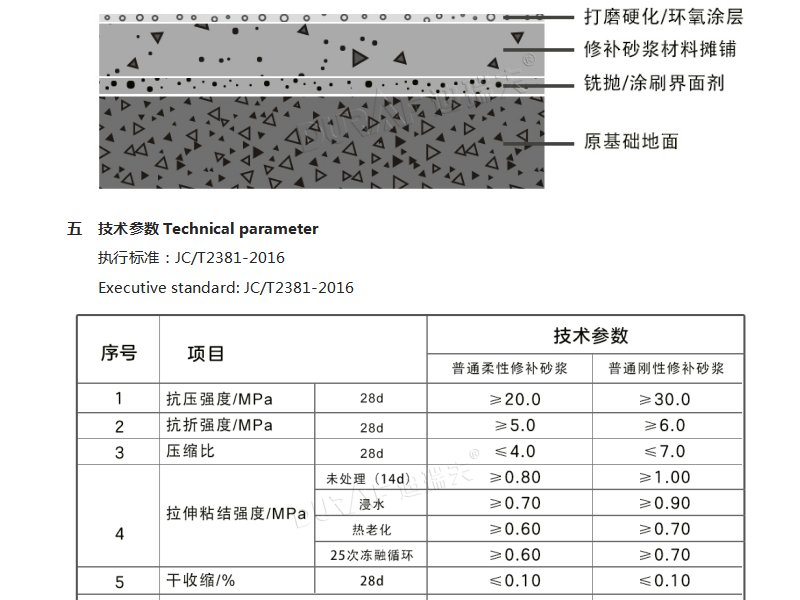 (2)流平型修补砂浆(适用于大面积的地面薄层找平及修补)