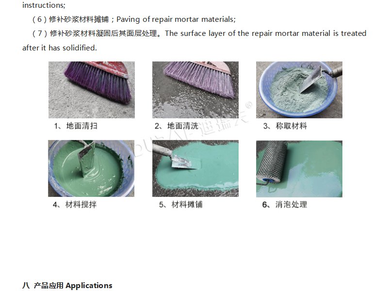 (1)抹平型修补砂浆(适用于地面裂缝、坑洞、麻面的修补)