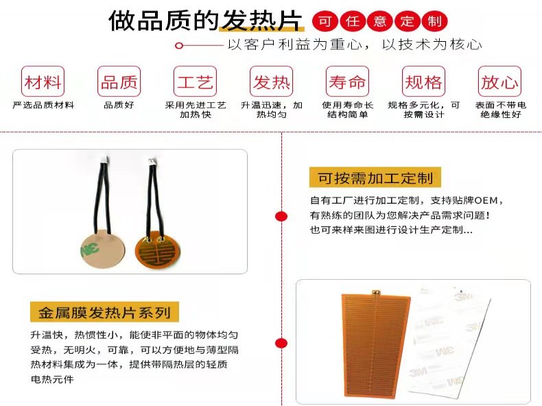 东莞市大热驰科技有限公司是一家专注薄膜绝缘电热膜、电热片的生产制造商,以及其它电子产品开发设计、销售、生产。线上及线下、批发、零售、分销、承接OEM加工等业务的公司。 本公司产品主要有PET、PI低温电热膜,聚酰亚胺高温电热膜,热压发热片,共4大类。各具特性的耐高温高压绝缘基材,我们制作的产品不仅适用于日常生活保温保健,还能配合各种精密电子仪器应用到高端的加热方案,如航空航天仪器恒温仪、。 同时,我们时刻紧跟市场的步伐,努力不懈的研发新产品和新技术,以更的产品满足客户的需求。 因为专注,所以,因为,所以迅速。 公司拥有的生产设备,的技术力量,丰富的设计和生产经验,完备的检测方法,并严格执行质量管理体系,确保每一件产品出厂合格率和运行的可靠性。同时公司具有快捷、完善的售后服务体系,使公司产品在激烈的市场竞争中,赢得广大用户的信赖