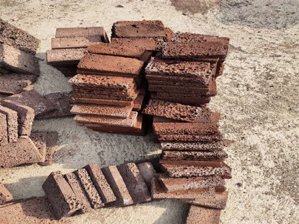 红色火山岩板 碎拼火山石板 墙面装饰别墅造景火山岩