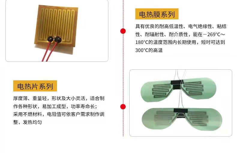 主营业务:PI电热膜、PET电热膜、云母电热膜、硅胶电热膜、金属复合丝发热等。可按要求订做