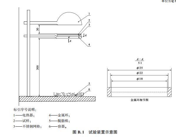 二、使用方法:KS-118D热辐射熔融滴落测试仪是将样品放置于支架上,支架上样品与辐射面的距离为30 mm;容器包括棉毛放置在支架网格下方300 mm的地方;把电热器到旁边辐射不到样品的地方,打开开关,待其完全运转,再放回样品上方位置,开始计时;如果材料熔化变形,保持电热器高度30 mm距离;在测试*一个5分钟时间里,如果材料开始燃烧,将电热器推到旁边三秒钟时间,待火焰熄灭再移回原处。反复同样的操作 ,*后看滴状物落下是否燃烧,或者是否点燃棉毛。