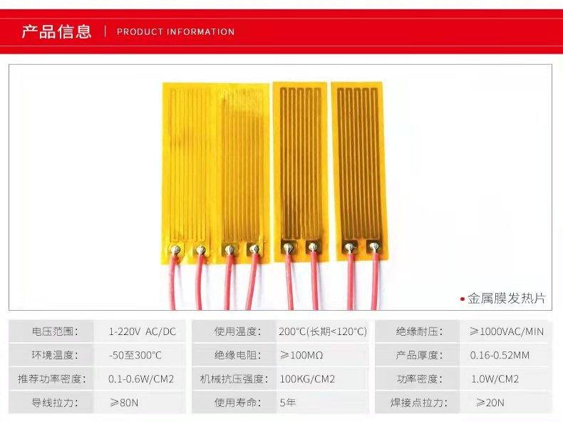 主营业务:PI电热膜、PET电热膜、云母电热膜、硅胶电热膜、金属复合丝发热等。可按要求订做