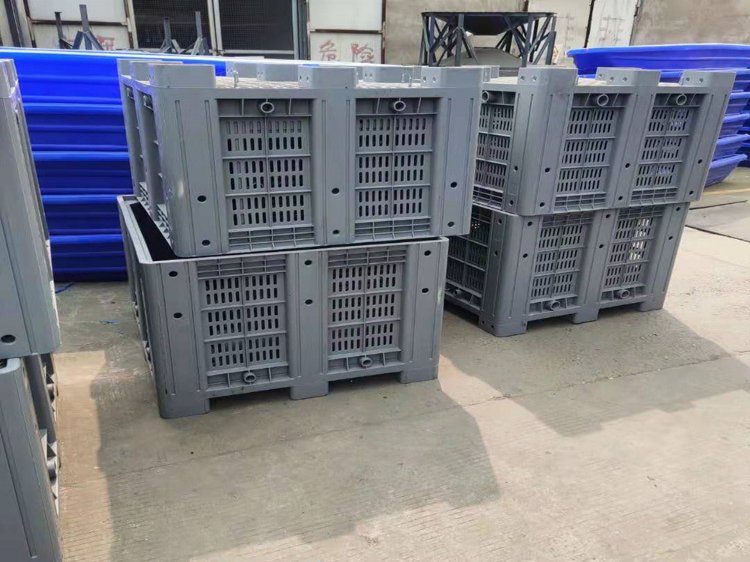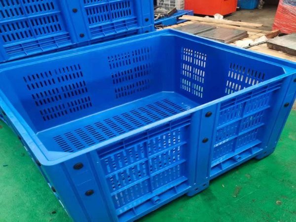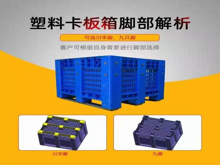 (2)塑料卡板箱是在塑料托盘的基础上制作成的大型装载周转箱,适用工厂周转,产品储存。可折叠和堆码,降低产品损耗,提高效率,节省空间,方便回收,节约包装费用。主要应用各种零部件和原料的包装,储存和运输,汽车零部件,衣服面料,蔬菜等集装化包装,是一款应用极广泛的物流容器。