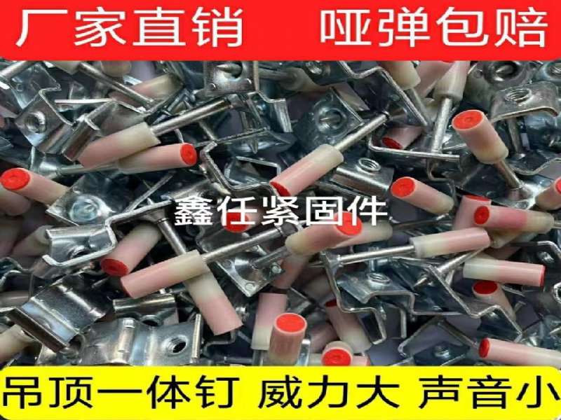 吊顶神器吊顶一体钉,看名称不难理解是吊顶用的。其实一体钉有很多种型号,吊顶一体钉只是其中一部分。为什么师傅们都叫吊顶一体钉呢,具体原因是这种一体钉*早的时候只有吊顶这个功能,也就是只有吊顶一体钉这个型号,比如吊顶一体钉M8、M6。今天我们就来详细盘点一下一体钉都有哪些型号。钢钉长度有32mm、42mm、47mm。一般我们用这个钢钉的具体长度来区分消防钉的型号。带弹壳总长度大概为50mm、60mm、65mm。(这个数据只做参考,不参与型号分类)钢钉直径大概为3.7mm、47mm的螺纹钉子略细。弹壳直径:8.5mm。适用于口令8.5mm的吊顶神器。一体钉从真正意义上来讲其实就是裸钉,长度有32mm、42mm、47mm。单独的裸钉也可以使用,就是威力比较大。功能单纯,固定完后效果跟普通水泥钉一样。关键的地方来了,裸钉搭配不同的铰片就变成了吊顶一体钉、卡管一体钉、消防一体钉,木龙骨一体钉。