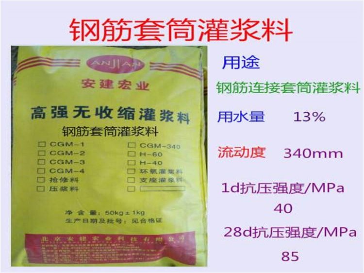 灌浆料和一般混凝土的*大区别就是灌浆料微膨胀,无收缩,而且强度上来得快,不会像混凝土基层因为机器的震动而出现松散的情况。
