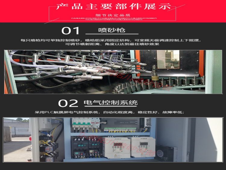 4.喷枪组采用固定结构,可水平,垂直移动,亦可多角度摆动,以达到较好的喷砂效果。