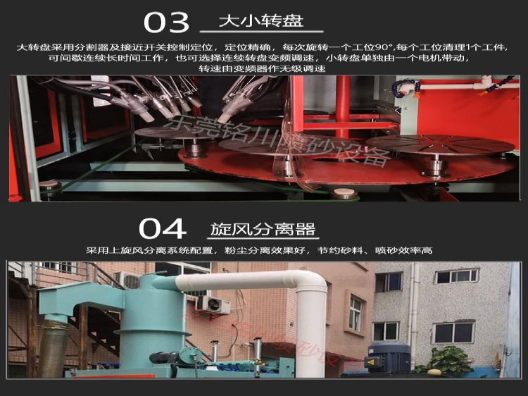 转盘式自动喷砂机特点: