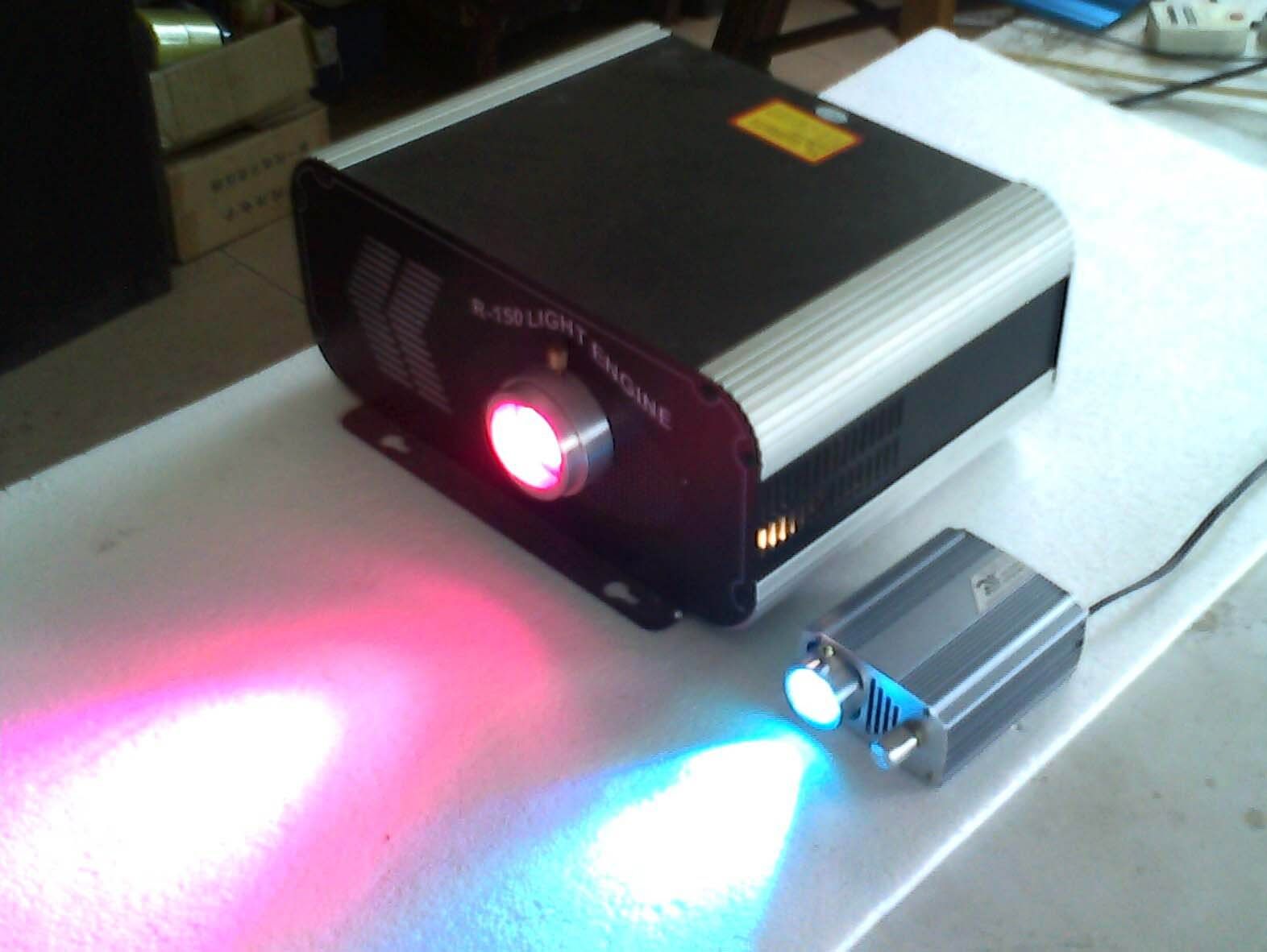 (3)色盘光束颜色的变化是通过变换不同颜色的滤色片来实现的,一般有红、黄、绿、蓝等几种颜色。色片固定在可转动的色轮上,然后通过步进电机来实现光束颜色的变换。 为了使光纤照明具有更多色彩,适应更广泛的需求,所以由智能控制器来代替普通电源控制器。它可以将光的强度、光的颜色实现连续变化,也可闪变。在音乐喷泉中还可随其音乐节奏而同步变化。 - 深圳科浦瑞光电有限公司(北京办事处)