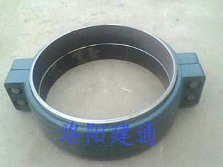 TD矿用快速接头组成:4瓣外部卡箍;连接钢圈;柔性橡胶圈;紧固螺栓等。