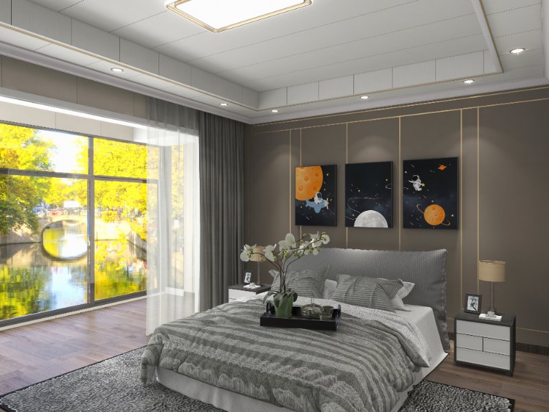 - 全屋整装 金属木饰面 竹木纤维墙面 铭镜装饰护墙板