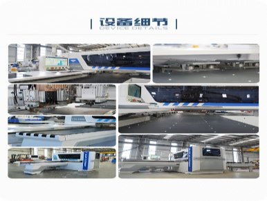 采用新式大方管,可承载重量大,床身增加LED灯,外观美观度高。 四工序开料机有四台主轴自动更换适合刀具,..