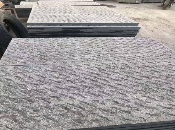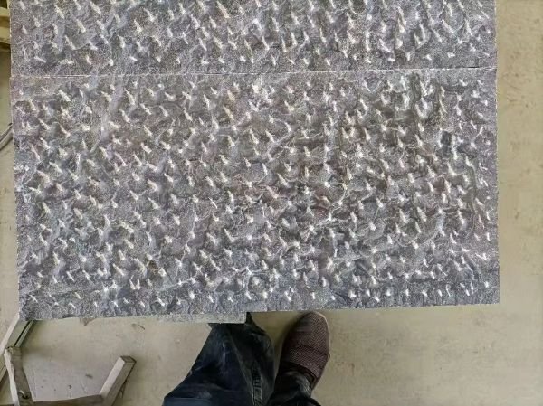 斩道面青石是用錾子,锤子敲击,人工打凿而成,分为粗斩和细斩,成品有直道和斜道,凹凸面和斩点面,又称为菠萝..