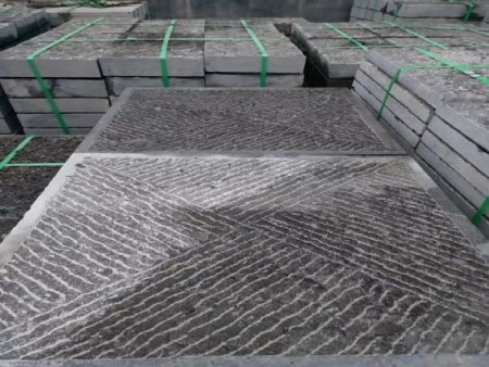 斩道面青石是用錾子,锤子敲击,人工打凿而成,分为粗斩和细斩,成品有直道和斜道,凹凸面和斩点面,又称为菠萝..