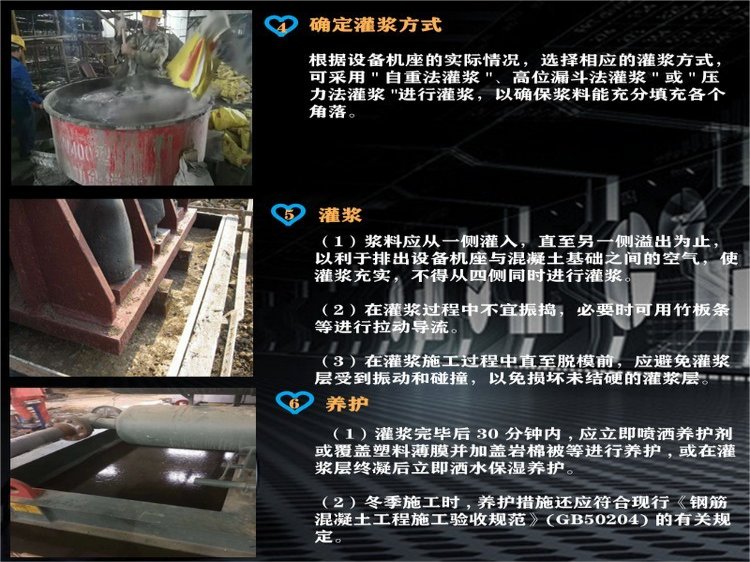 技术特点: 1、灌浆料早强、高强:一天强度可达60MPa以上,设备安装完毕一天后即可运行生产。 ..