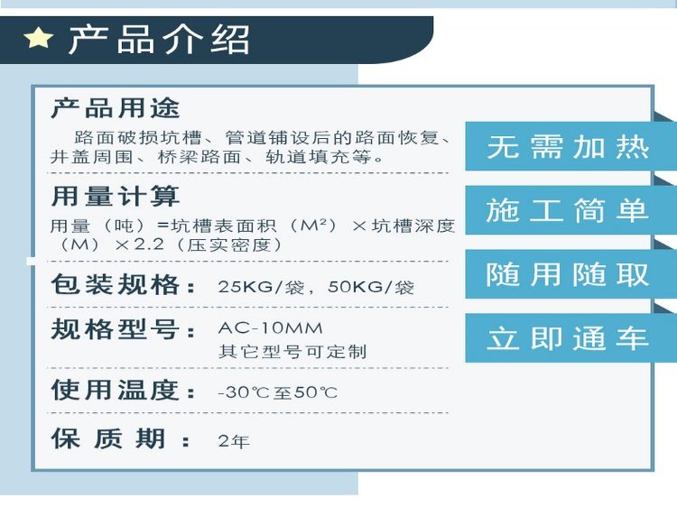 - 井圈沥青混凝土-道路冷补料-黑色快干自流料