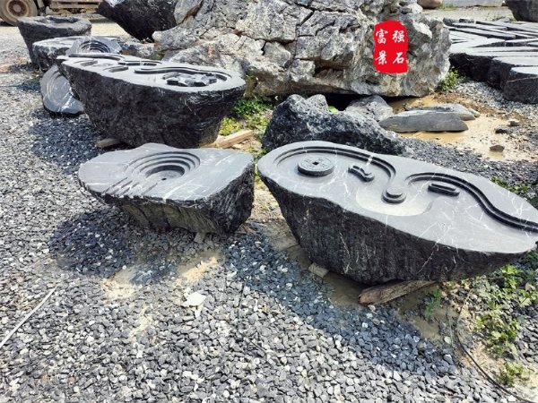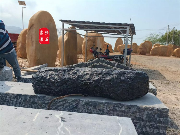 - 大型黑山石假山造景 原石加工切片