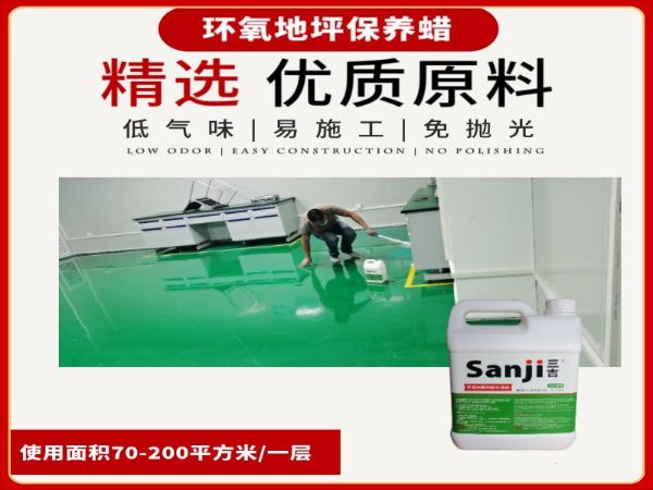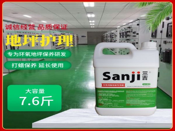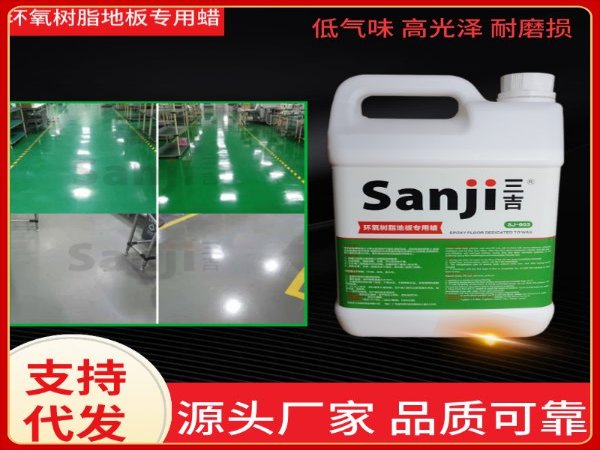 本品SJ-003环氧树脂地板*蜡工厂无尘室车间环氧自流坪地面保养蜡水由金属链高分子聚合树脂和PE蜡调制而成,具有很强的附着力,经久耐磨性,流平性好,成膜后的光泽度晶莹透亮,防滑防尘,防污染,防鞋跟印, 省工省时,是针对环氧地坪调制的保养蜡水。