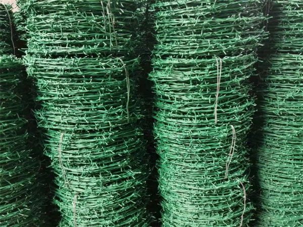 绿色钢丝网绿色刺铁丝 绿色刺铁丝(刺铁丝)是指由热镀锌刺丝缠绕在主丝上面拧编而成,从而起到防护、隔离作用..
