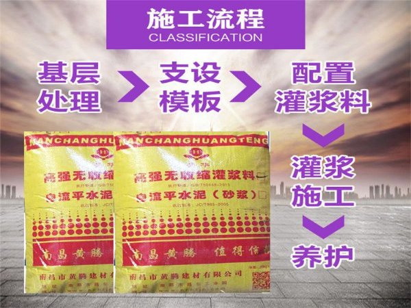江西南昌黄腾CGM-1型高强无收缩灌浆料,具有强度高、流动性好、无收缩等优点。灌浆是把浆液灌入土壤或岩石地基中的空隙、裂缝、裂隙或者洞穴的一个过程,用以改善它们的性质,特别是减少渗透性,增加强度,或者减少地基的变形。为了达 到 预期的目的,钻孔钻入地层,然后将浆液在压力下灌入,直至灌浆段的周围孔隙充填到满足设计中规定的条件。灌浆已广泛地应用在近代土木工程中,包括∶