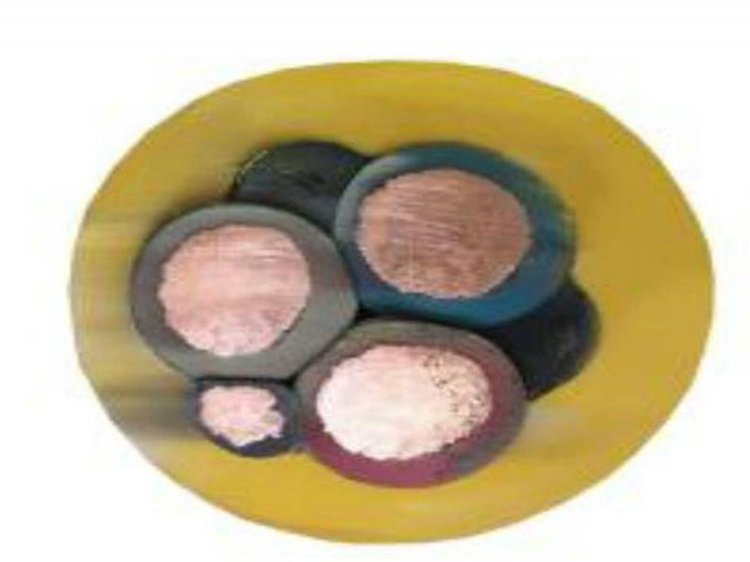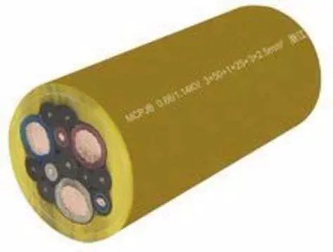 M型电缆有4芯和5芯两种结构,有3根主线芯和一根地线芯组成(5芯电缆中有一芯为控制线),围绕垫芯绞合成缆,外面挤包氯化聚乙烯橡皮护套或黑色氯丁橡皮护套。