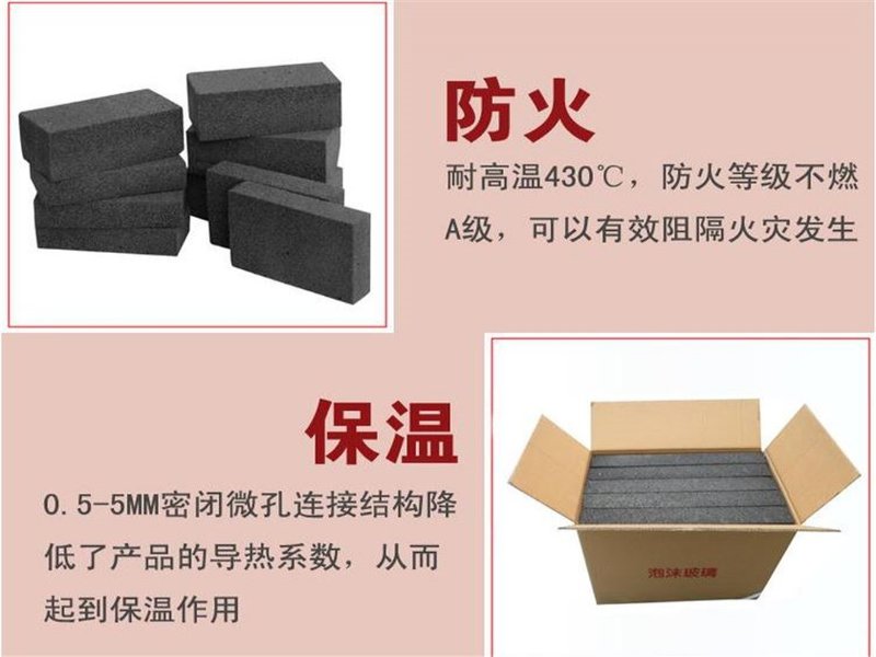 三、强度相对好,不易碎裂 泡沫玻璃保温板防火隔离带抗压、抗折、强度指标均较高,达到了低密度较高强度的相对统一,并符合耐火完整性。