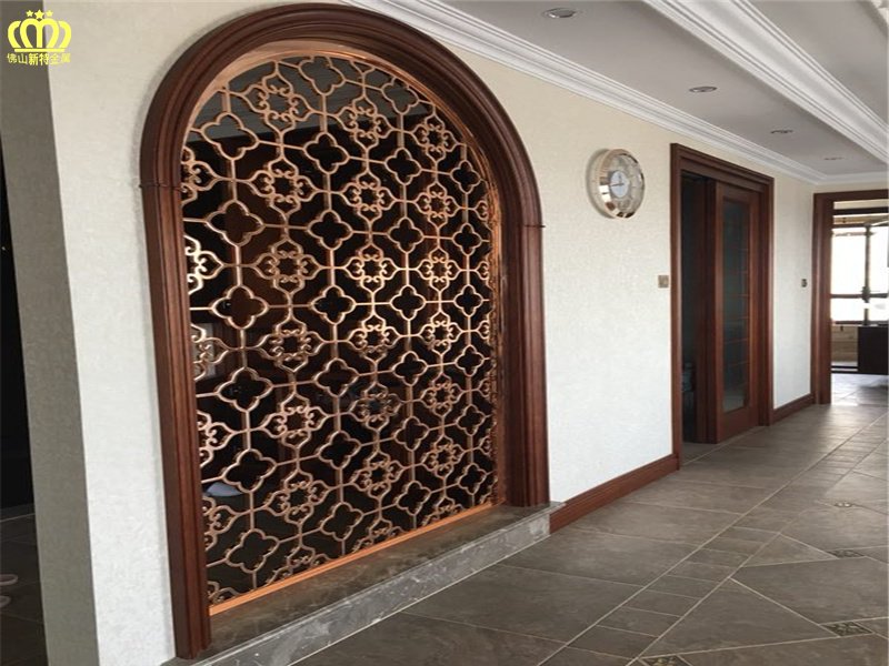镇江北欧金属屏风 实心铜板雕刻入门餐厅格栅加工厂
