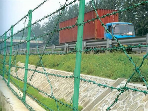 绿色钢丝网绿色刺铁丝 绿色刺铁丝(刺铁丝)是指由热镀锌刺丝缠绕在主丝上面拧编而成,从而起到防护、隔离作用..