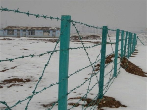 绿色铁蒺藜用途:带刺铁丝网主要用于工业,农业,畜牧业,高速公路,林场防护.刺绳护栏网是一种防护网。该产品具有吓阻效果好.美观.施工便利.经济实用等特点。可用于防盗窗,高速护栏,隔离栅圈禁防护,施工迅速。