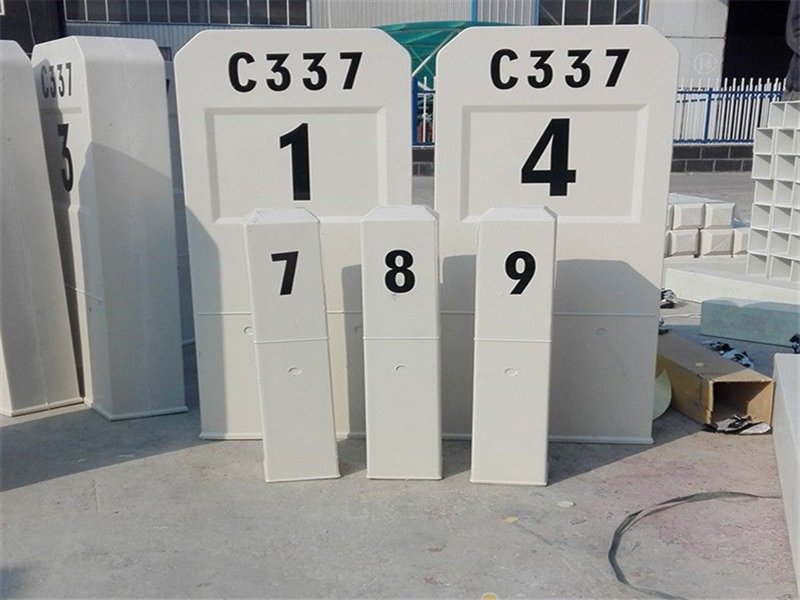 2、玻璃钢百米桩符合现代要求的环保材料,满足未来发展需要。在桩体表面印有明显反光效果的安全警示标识。