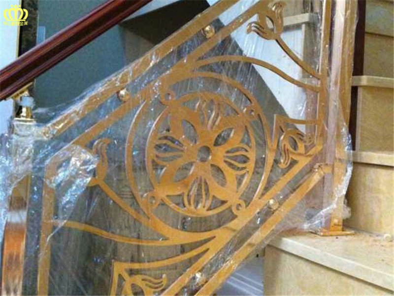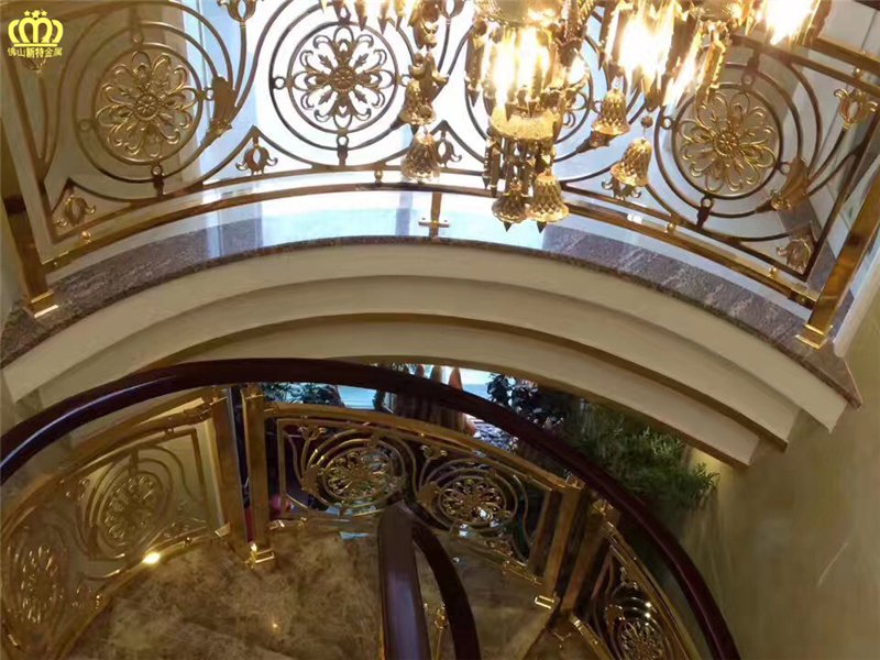 - 佛山工厂电镀镜面K金色铜雕花围栏设计新颖