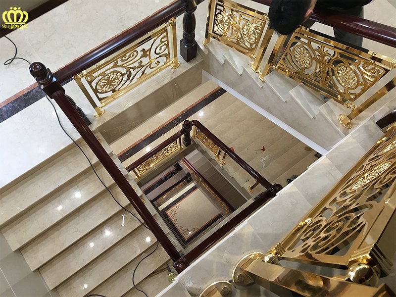 - 佛山工厂电镀镜面K金色铜雕花围栏设计新颖