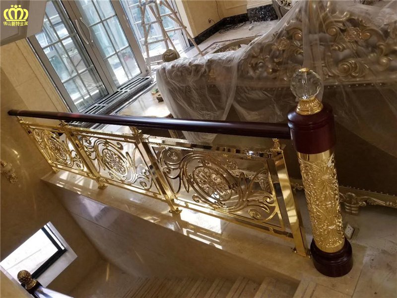 - 佛山工厂电镀镜面K金色铜雕花围栏设计新颖