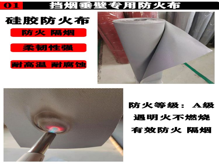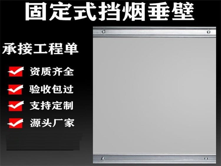 固定式挡烟垂壁的主要材料有钢板、防火玻璃、不燃无机复合板、无机纤维织物等。