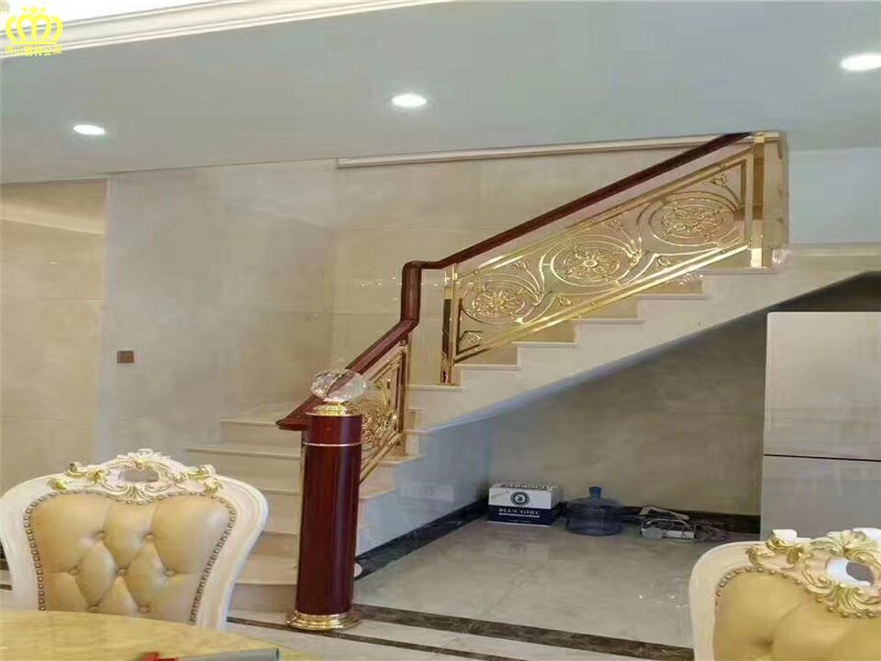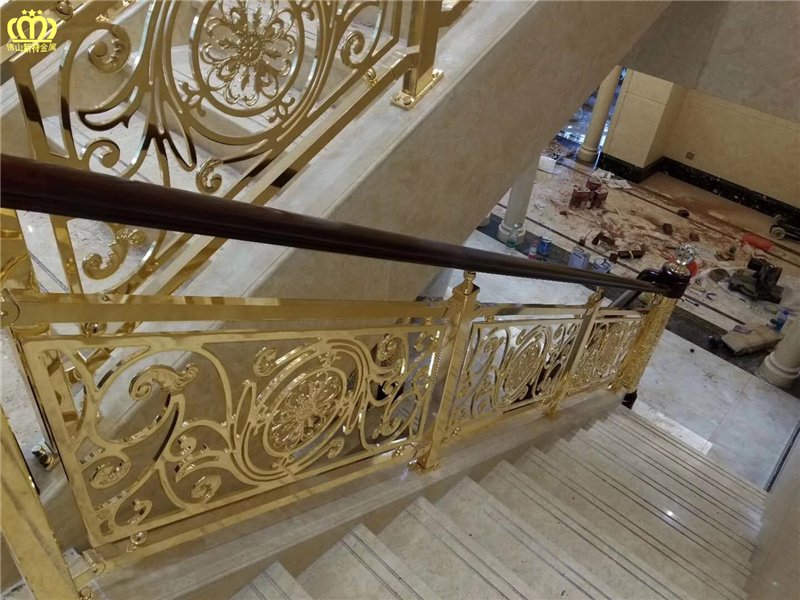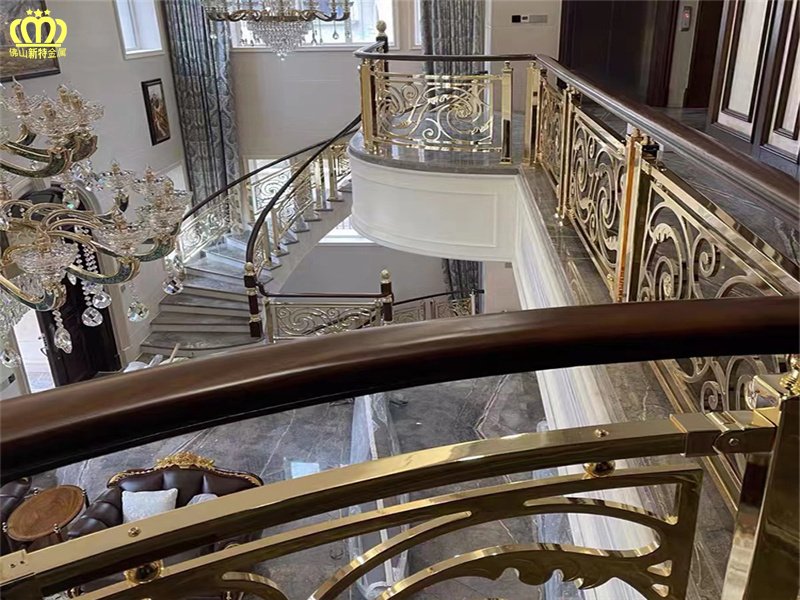 新款铜楼梯真的华贵体验,铜雕刻护栏扶手表面采用镀真铜、真空镀或者涂氟碳漆后,它不会锈蚀,不会产生光污染,历久能常新,既美观又耐用;雕艺家使用雕刻、浮雕和镂空的技术使护栏一次成型,无焊接点无缝隙间隔,整体成型使它更为稳定弧形铜艺镂空花格楼梯护栏,铜板雕花格镂空阳台护栏整体线条流畅,自然,细腻,彰显出完满的艺术掌控力;细节处多以细腻柔和的花朵纹饰作为点缀,在硬朗厚实之中凸显优雅唯美的气质;色泽典雅大气,与整体空间的配合,表现出一种尊贵,荣誉的气派。 - 佛山市新特金属有限公司