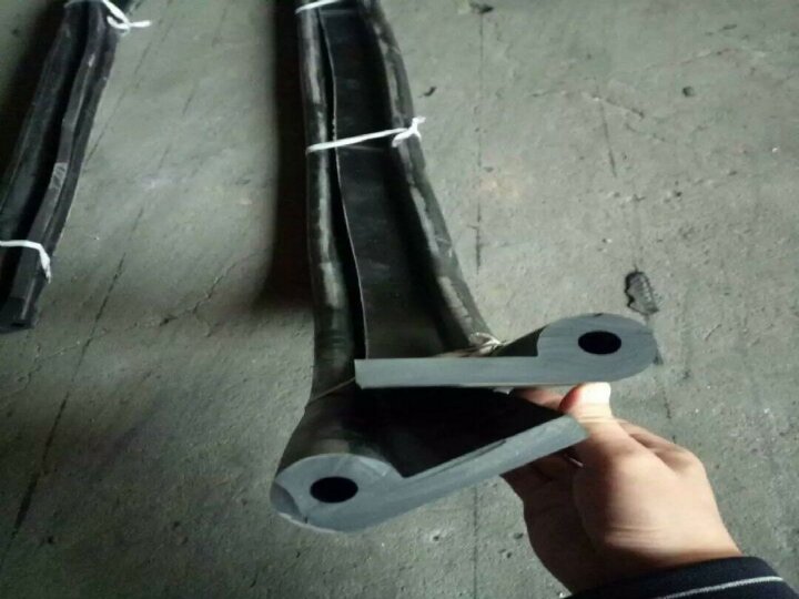 P型闸门水封是由天然橡胶(或合成橡胶)通过炼胶设备(开放式炼胶机或密炼机)分段塑炼后,混入*防老剂、硫化促进剂、硫化助剂、补强剂、增塑剂等十多种原料后制得半成品混炼胶,再置于一定型腔的模具中,经硫化压机于高温、高压条件下而制得的符合水工钢闸门止水综合要求的止水元件,俗称普通水封。闸门水封是水电工程闸门的一个重要组成部分,是保证闸门密闭封水、正常运行的关键部件。