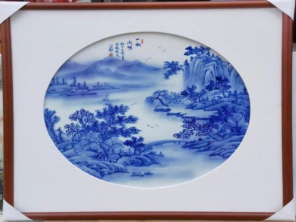 景德镇手绘青花瓷板画依托千年瓷都深厚底蕴,融合传统技艺与现代美学,成为艺术收藏与空间装饰的典范。每一幅作品均由景德镇资深画师纯手工绘制,采用天然钴料在高白泥坯体上勾勒纹样,经 1300℃高温釉下彩烧制而成,色彩渗透瓷质肌理,呈现出如宣纸水墨般的层次与韵致。画师团队传承古法工艺