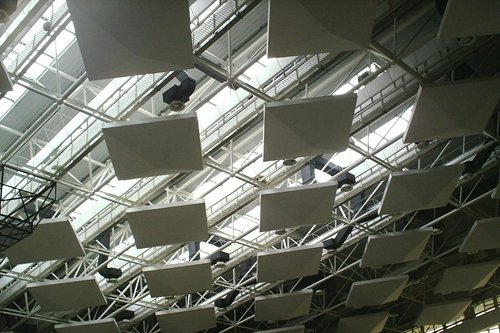 在民用建筑中,特别是大型的厅堂建筑,用于音质处理的空间吸声体,在满足声学要求的条件下,同时要考虑装修效果,也即功能与艺术的结合。因此,声学工程师在设计空间吸声体,必须与建筑师和业主密切配合,有时还可请装修艺术家参与,做到完美的结合。
