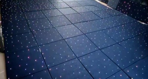 星空顶处理,规格:均为1200*600*12mm面板,实际装好之后,非喷绘款式显示工艺缝为600*600格子,喷绘星空顶因为不倒角,所以直接密缝安装。