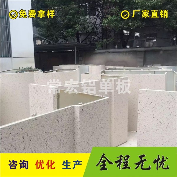 常宏仿石材铝单板可按照客户提供的天然石材进行打样,相似程度可达98%以上。并可按照客户要求表面做凹凸有手感仿大理石铝单板和光面仿大理石铝单板。仿大理石铝单板更多主要用于幕墙装饰,在装饰效果上给人以装重、高贵的视觉感受,增加整体的装饰效果,给人以大气稳重的质感。仿石材铝单板和幕墙装饰用石材相比,仿石材铝单板的可塑性和装饰效果更加出色,仿石材铝单板与大理石相比的优点主要表现在以下几点: