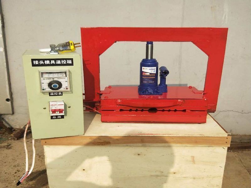 控制箱两部分组成,模具内设有与控制箱相连接的电热元件,模具的界面形状与被加热元件相适应,模具的中间部位设有测温设施,生胶片与止水带接头处的硫化胶材料相似,亲和作用大,生胶片里的硫化剂扩散至接头界面,与硫化胶剩余的双键发生交联反应,形成共硫化体系,使两根止水带接头处连为一体,加压硫化过程中需严格控制硫化温度和硫化时间。