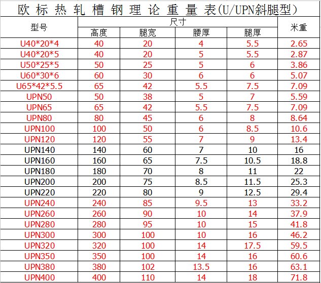 理论重量计算公式W(kg/m)=0.00785×腰厚×{高+(腿宽-腰厚)}