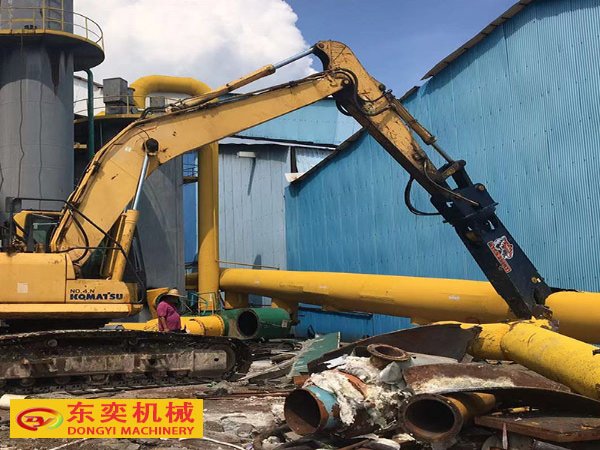 四是是环保,无火焰剪切,传统的火焰切割能耗高、金属燃烧严重、效率低、加工成本高、劳动强度大、工作条件差,杂质掺杂多、环境污染高。利用挖掘机鹰嘴剪处理废钢,只需一台挖掘机,并且完全避免了有毒有害气体的产生和损害。