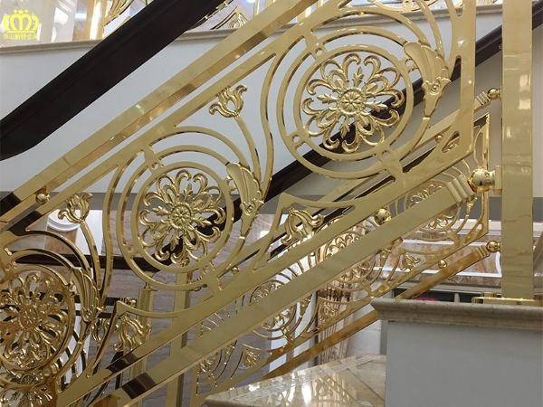 或者铜制而成,造型样式特色,包括各种雕花产品,平雕产品,传统的花型有紫荆花、郁金香、牡丹花、月季花等,还可以来图来样定做。有些家庭有比较大的空间,特别是有客厅内有阶梯的或是跃层的住户就要用到铜艺楼梯扶手,让家里看起来时尚光鲜;然而,别墅里面也可以运用到